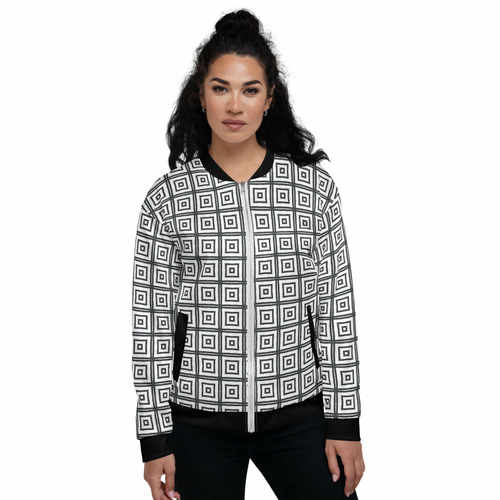 The Women's Bomber Jacket is incredibly versatile, allowing you to style it in numerous ways. Pair it with your favorite jeans and a simple t-shirt for a casual look, or layer it over a dress for a chic, modern outfit. The black and white argyle squares design makes it easy to mix and match with various colors and patterns, ensuring you always look fashionable.