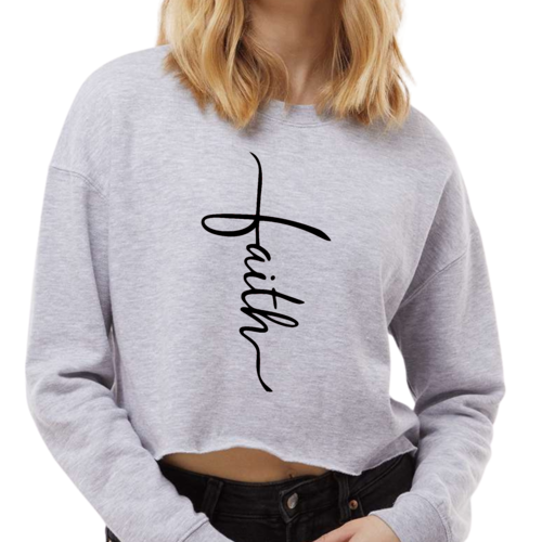 Choosing our Women's Cropped Graphic Sweatshirt means opting for quality, style, and comfort. The unique Faith Script Cross design sets it apart from other sweatshirts, making it a meaningful addition to your wardrobe. Whether you're buying it for yourself or as a gift for a loved one, this sweatshirt is sure to be appreciated for its thoughtful design and comfortable fit.