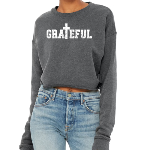 Choosing our Women's Cropped Graphic Sweatshirt means opting for quality, comfort, and style. With its unique Grateful print and soft fabric, it's a wardrobe essential that you won't want to miss. Embrace the colder months with confidence and flair, knowing you look great while feeling cozy.
