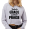 In summary, the Women's Cropped Graphic Sweatshirt, Inhale Grace Exhale Praise Black, is a must-have for any fashion-forward woman. Its stylish design, comfortable fit, and durable construction make it a versatile piece that can be dressed up or down. Add this sweatshirt to your collection today and enjoy the perfect combination of style and comfort!