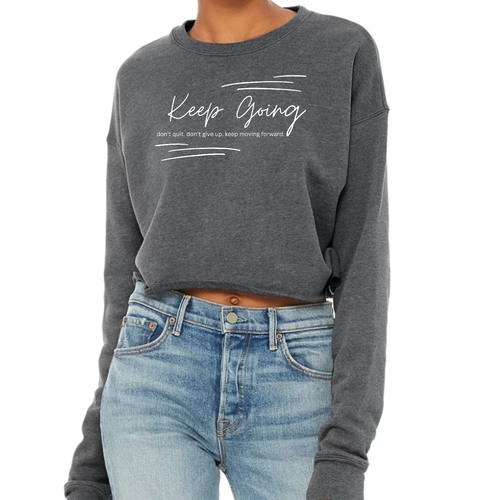 In summary, the Women's Cropped Graphic Sweatshirt with the 'Keep Going Don't Give Up' design is not just a fashion statement; it's a source of inspiration. With its comfortable fit, high-quality materials, and motivational message, it’s a must-have for anyone looking to combine style with positivity.