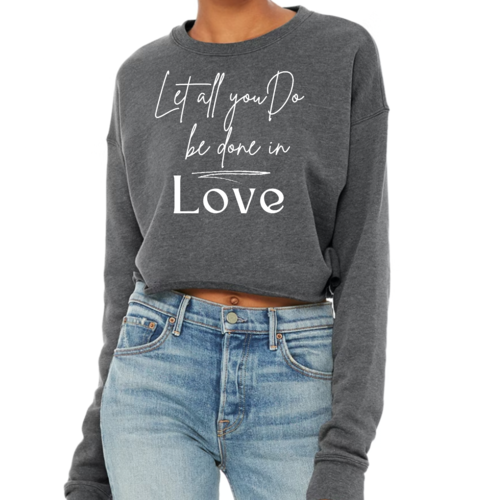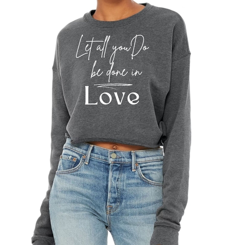 In summary, our Women's Cropped Graphic Sweatshirt featuring the quote 'Let All You Do Be Done in Love' is the perfect blend of style, comfort, and durability. Whether you're expressing your faith or simply looking for a fashionable piece to add to your collection, this sweatshirt is sure to impress. Don’t miss out on the chance to own this unique and meaningful garment!