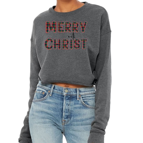This Women's Cropped Graphic Sweatshirt is ideal for holiday gatherings, casual outings, or cozy nights in. Pair it with your favorite jeans or leggings for a laid-back yet festive look. The 'Merry with Christ' graphic adds a touch of joy and celebration, making it a great choice for Christmas parties or family gatherings.