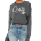 The Women's Cropped Graphic Sweatshirt features a drop shoulder design that enhances comfort and allows for easy movement. The crew neckline adds a classic touch, making it versatile enough to pair with various outfits. Whether you're lounging at home, running errands, or enjoying a casual outing, this sweatshirt will keep you looking stylish and feeling cozy.