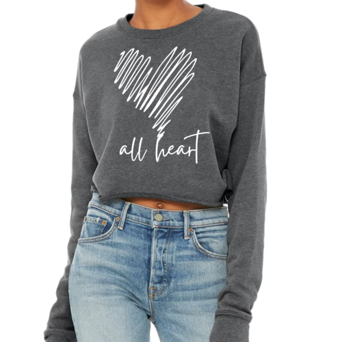In summary, the Women's Cropped Graphic Sweatshirt featuring the 'Say it Soul - All Heart' line art design is a must-have for anyone looking to combine comfort with style. Its high-quality materials, unique design, and durable construction make it an excellent addition to any wardrobe. Embrace your individuality and express your style with this fashionable sweatshirt.