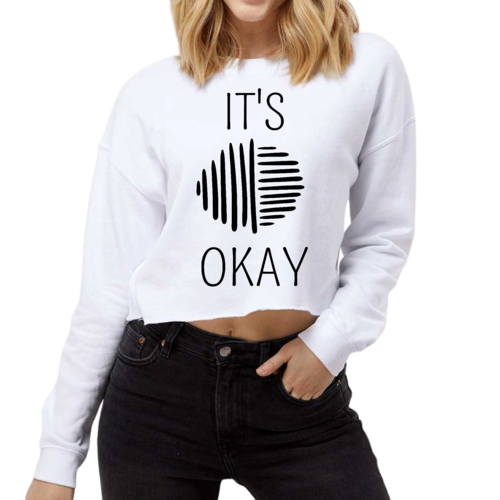 Introducing the Women's Cropped Graphic Sweatshirt, a perfect blend of comfort and style. This sweatshirt is designed to keep you warm during the colder months while making a fashion statement. The motivational phrase 'Say it Soul, it's Okay' adds a unique touch, making it not just a piece of clothing but a source of inspiration.