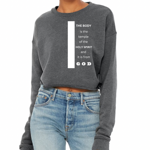 Introducing the Womens Cropped Graphic Sweatshirt featuring the inspiring phrase, 'The Body is the Temple of the Holy Spirit.' This sweatshirt is not just a piece of clothing; it’s a statement of faith and style. Perfect for those who want to express their beliefs while looking fashionable, this cropped sweatshirt is designed to turn heads and spark conversations.