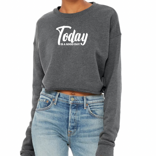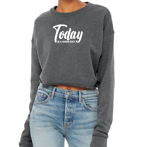 In summary, the Women's Cropped Graphic Sweatshirt 'Today Is A Good Day' is a stylish and comfortable addition to any woman's closet. With its high-quality materials, flattering fit, and positive message, it is perfect for everyday wear or special occasions. Don't miss out on the chance to elevate your wardrobe with this trendy piece!
