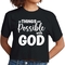 Embrace positivity with the inspiring message printed on the shirt. 'All Things are Possible with God' serves as a daily reminder of faith and hope, making it a perfect gift for yourself or a loved one. Whether you're heading to a casual outing, running errands, or simply lounging at home, this t-shirt will keep you motivated and stylish.