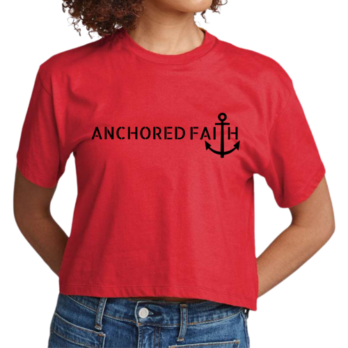 In summary, the Womens Cropped Graphic T-shirt, Anchored Faith Black Print is more than just a piece of clothing; it's a representation of your beliefs and style. With its high-quality materials, thoughtful design, and versatile fit, it's an essential addition to any woman's wardrobe.