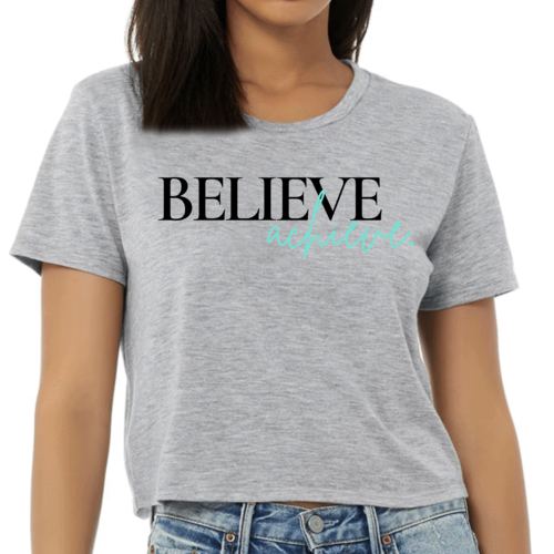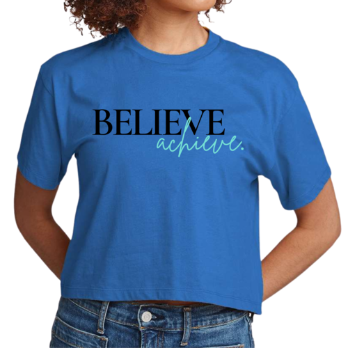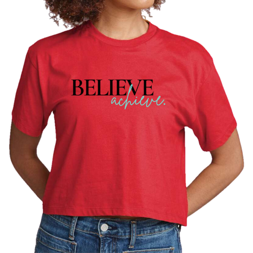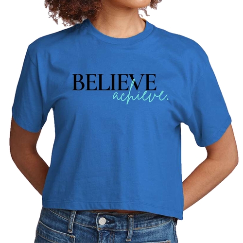 The 'Believe and Achieve' graphic is printed in the USA, showcasing a high-quality finish that stands out. The design is not only motivational but also trendy, making it easy to pair with your favorite jeans, shorts, or skirts. The cropped style adds a modern twist, allowing you to showcase your personal style effortlessly.