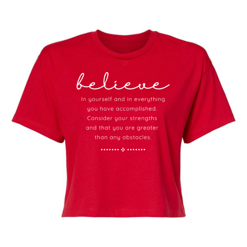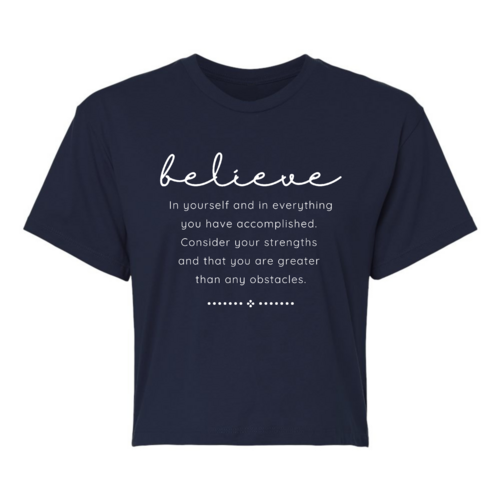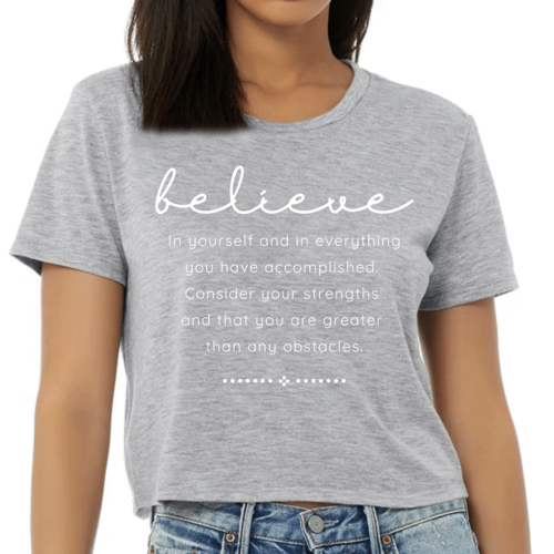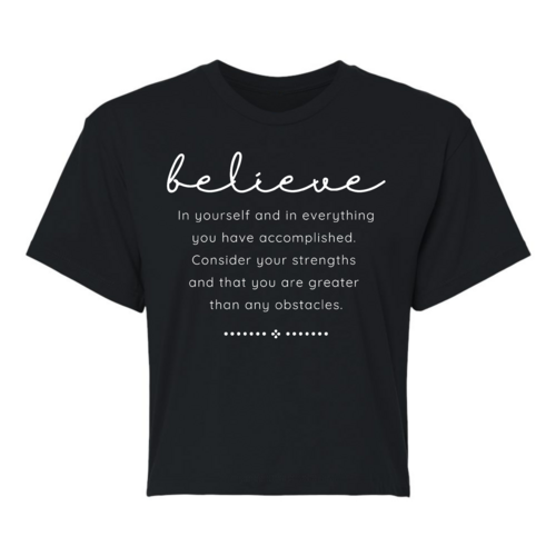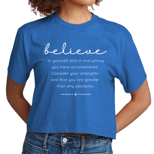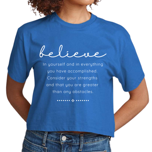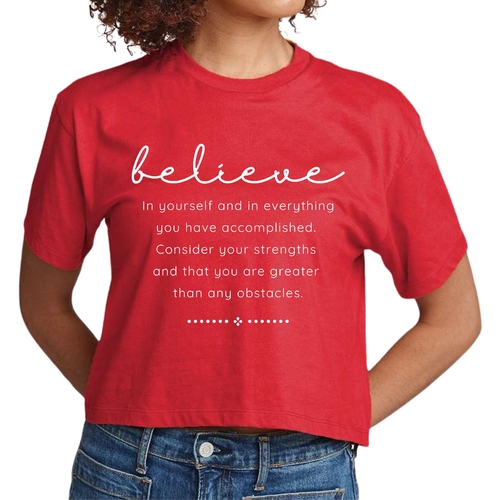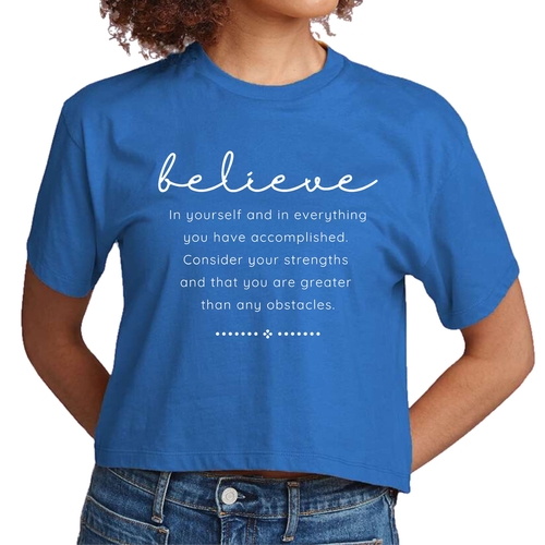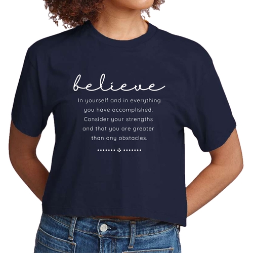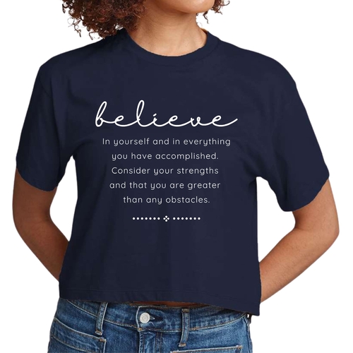 Choosing our Women's Cropped Graphic T-shirt means opting for quality, comfort, and style. The combination of a motivational message and a trendy design makes it a must-have for anyone looking to uplift their wardrobe. Whether you're buying it for yourself or as a gift for a friend, this t-shirt is sure to inspire and impress.