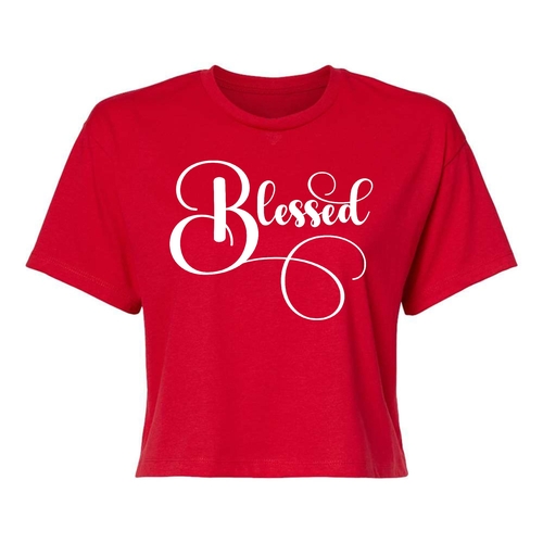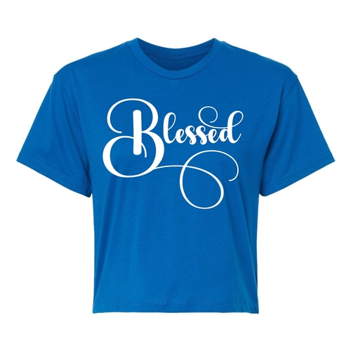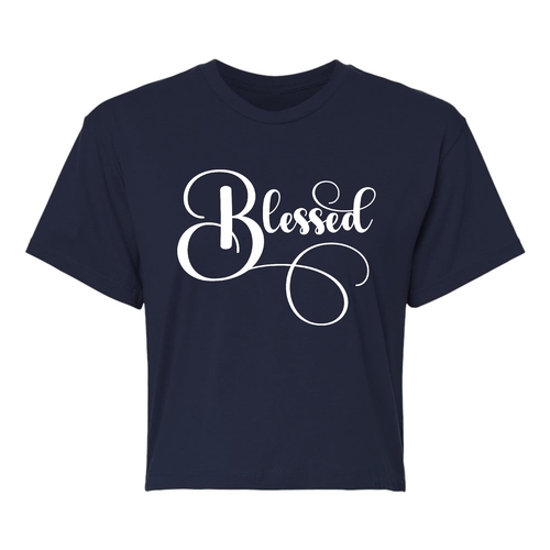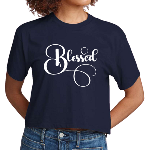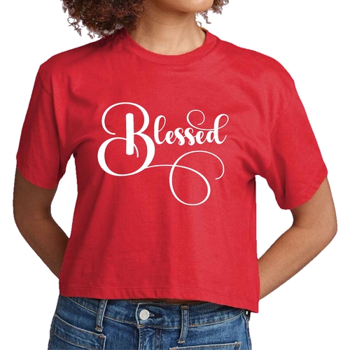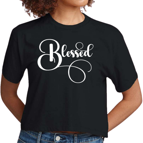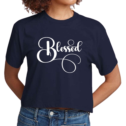 Womens Cropped Graphic T-shirt featuring a Blessed Graphic Illustration, made from soft preshrunk cotton with a classic fit.