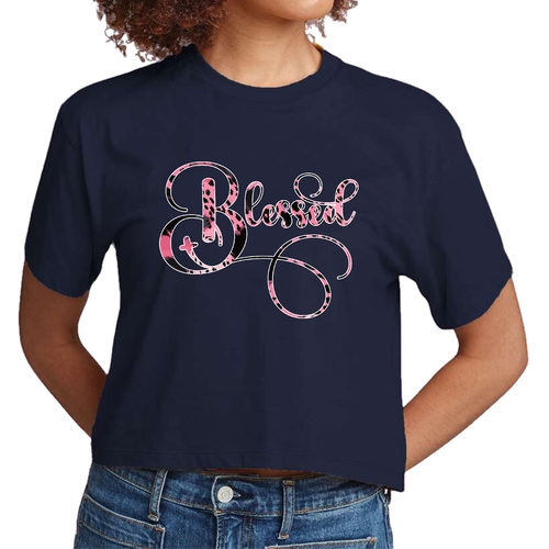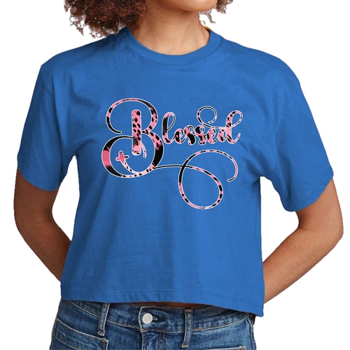 Introducing our Womens Cropped Graphic T-shirt in a stunning Blessed Pink and Black Patterned design. This stylish and comfortable T-shirt is perfect for casual outings, lounging at home, or even dressing up for a night out. Made from high-quality preshrunk cotton, this T-shirt ensures that you not only look good but feel great too. The unique graphic illustration adds a trendy touch to your wardrobe, making it a must-have piece for any fashion-forward woman.
