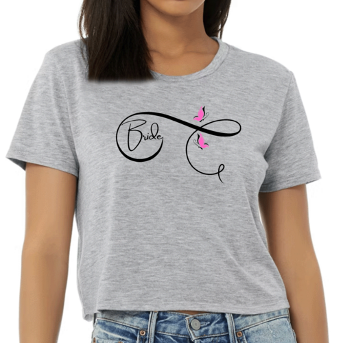 Introducing the Womens Cropped Graphic T-shirt, Bride - Wedding Bridal Pink Butterfly, a must-have for every bride-to-be! This trendy cropped tee combines comfort and style, making it the perfect choice for bridal parties, bachelorette celebrations, or casual outings. Made from high-quality preshrunk cotton, this shirt ensures that you stay comfortable while looking fabulous.