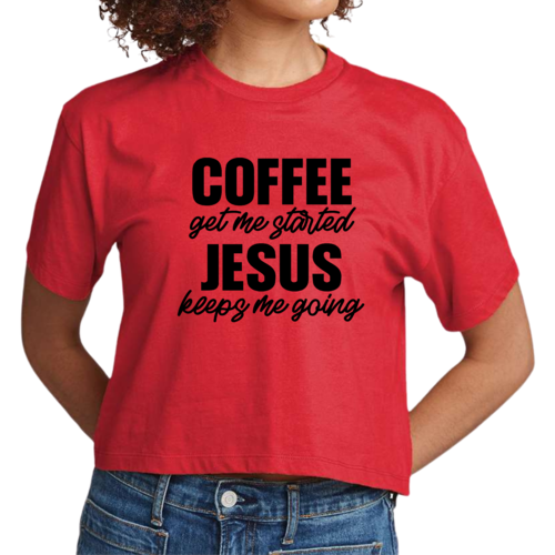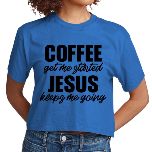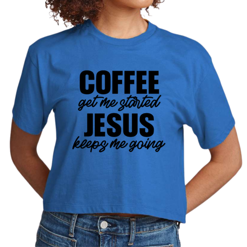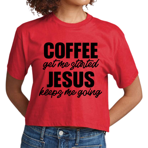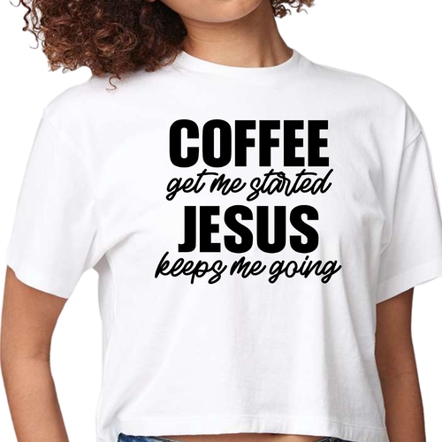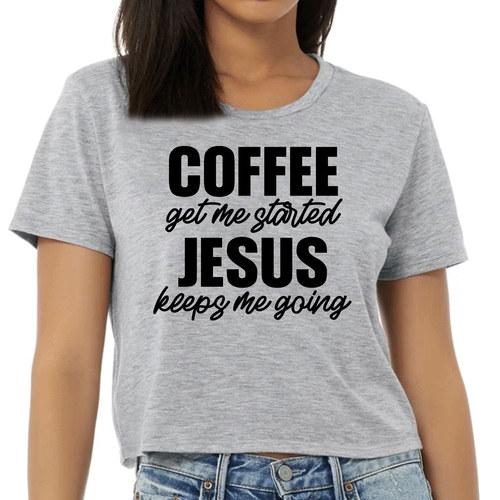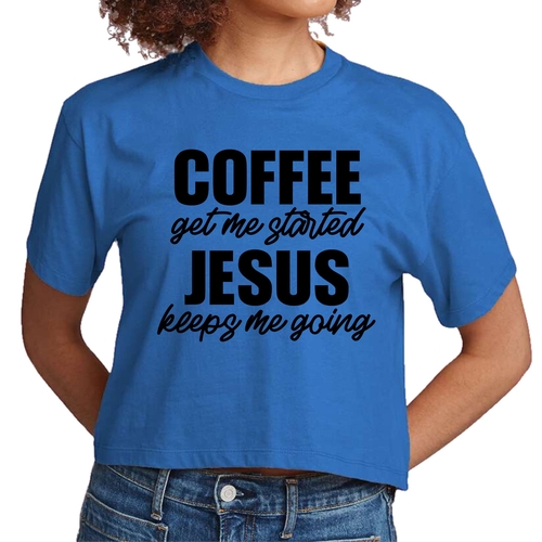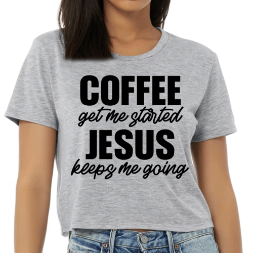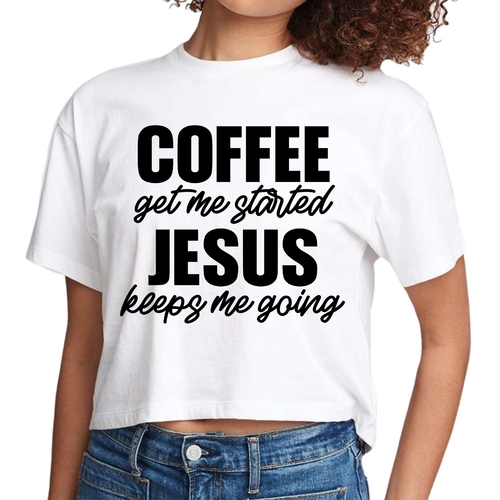 Introducing our Women's Cropped Graphic T-shirt, a perfect blend of style and comfort. This trendy tee features the playful phrase 'Coffee Get me Started' alongside a beautiful graphic that resonates with coffee lovers and those who appreciate a good laugh. Made from 100% combed and ring-spun cotton, this shirt is designed to feel soft against your skin while providing a relaxed fit that flatters all body types.
