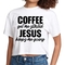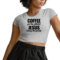 The cropped design of this graphic t-shirt makes it perfect for layering or wearing on its own. Pair it with high-waisted jeans or shorts for a trendy look, or throw on a cardigan for a cozy vibe. The unique coffee-themed graphic is not only stylish but also a great conversation starter, making it ideal for casual outings, coffee dates, or lounging at home.
