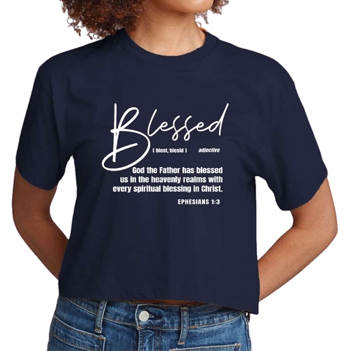 Looking for the perfect gift for a friend or loved one who embraces their creativity? The Women's Cropped Graphic T-shirt, Ephesians - Blessed with Every, makes an excellent gift choice. It is a thoughtful present that combines style, comfort, and a meaningful message, making it a cherished addition to anyone's wardrobe.
