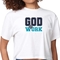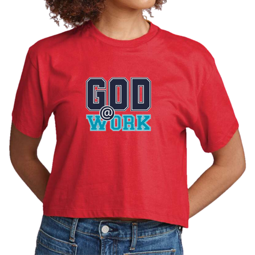 The 'God @ Work' graphic adds a meaningful touch to this T-shirt, making it a great conversation starter. Whether you're heading to a casual brunch, running errands, or lounging at home, this cropped T-shirt is versatile enough to suit any occasion. Pair it with your favorite denim jacket for a trendy layered look or wear it alone for a relaxed vibe.
