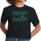 Introducing our Women's Cropped Graphic T-shirt, a perfect blend of style and comfort. This unique t-shirt features a festive 'Merry with Christ' graphic, making it an ideal choice for the holiday season. The vibrant green plaid design adds a trendy touch, ensuring you stand out while celebrating the festivities.