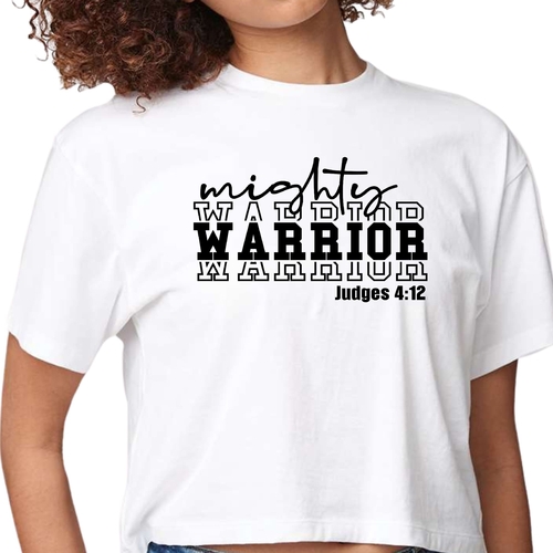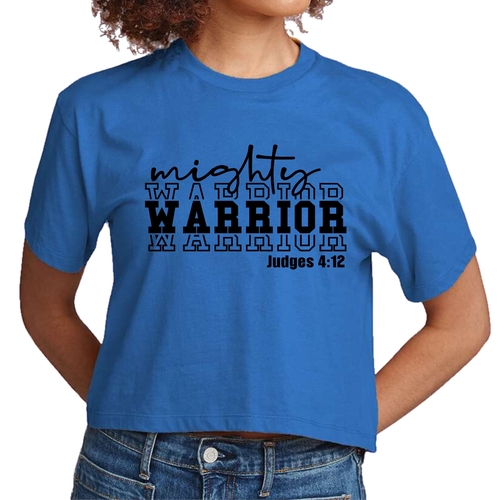 Whether you're heading to a casual outing, a workout session, or just lounging at home, the Womens Cropped Graphic T-shirt is versatile enough to suit any occasion. The Mighty Warrior graphic adds a bold statement to your outfit, allowing you to showcase your personality and style. Pair it with your favorite accessories to elevate your look even further.