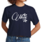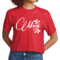 This cropped graphic t-shirt is designed to fit like a well-loved favorite. The side-seamed construction and shoulder-to-shoulder taping ensure a flattering fit that complements various body types. Pair it with high-waisted jeans, shorts, or skirts for a chic look that’s perfect for casual outings, family gatherings, or simply lounging at home.