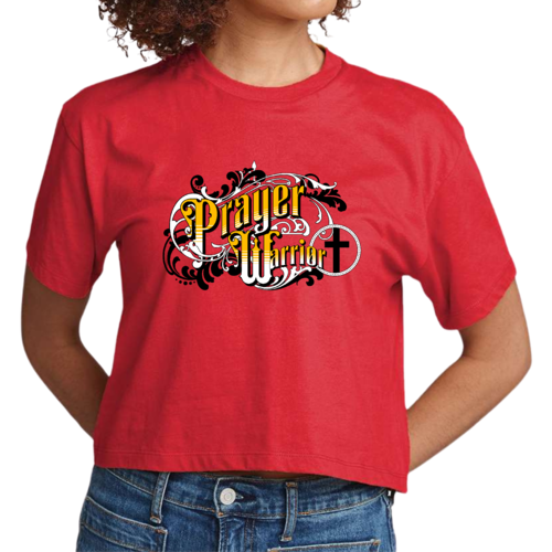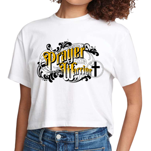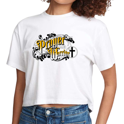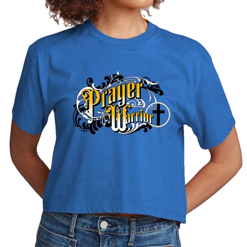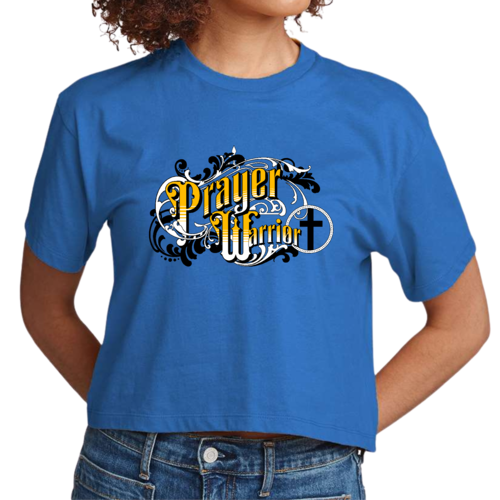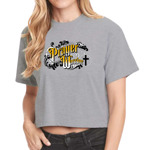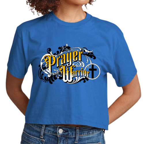 The Prayer Warrior graphic is beautifully designed in a Victorian style, making it a standout piece in any casual outfit. Whether you're heading to a coffee shop, running errands, or attending a casual gathering, this cropped t-shirt will keep you looking chic and stylish. The crew neck and short sleeves provide a classic silhouette that flatters all body types.