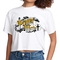 The Women's Cropped Graphic T-shirt is incredibly versatile, allowing you to style it in numerous ways. Pair it with high-waisted jeans or shorts for a casual look, or layer it under a jacket for a more polished outfit. You can also dress it up with a skirt and accessories for a night out. The possibilities are endless!