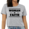 This t-shirt is not just a piece of clothing; it's a statement of faith and style. The 'Woman of Faith' graphic serves as a daily reminder of your beliefs and values, making it a meaningful addition to your wardrobe. Pair it with your favorite jeans, shorts, or skirts for a chic, casual look that showcases your personality.