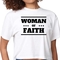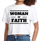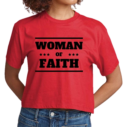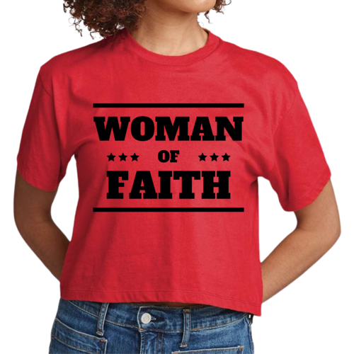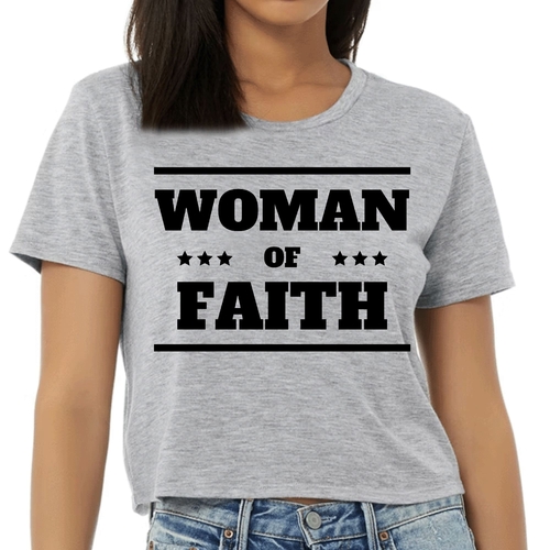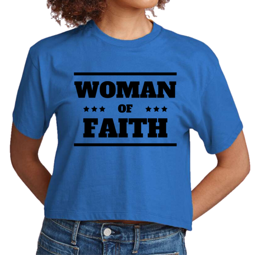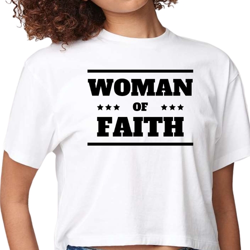 Introducing our Women's Cropped Graphic T-shirt, a perfect blend of comfort and inspiration. This stylish tee features a striking 'Woman of Faith' black illustration, making it an ideal choice for those who want to express their faith through fashion. Made from soft, preshrunk cotton, this t-shirt retains its softness and size even after multiple washes, ensuring you look great and feel comfortable every time you wear it.