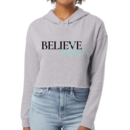 In summary, the Womens Cropped Hoodie 'Believe and Achieve' combines style, comfort, and motivation in one fantastic piece. With its high-quality materials, relaxed fit, and inspirational design, this hoodie is sure to become your go-to choice for any occasion. Don't miss out on the chance to add this motivational piece to your collection!