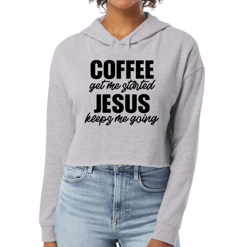 Introducing the Women's Cropped Hoodie: Coffee Get Me Started, Jesus Keeps Me Going, a perfect blend of style and comfort for the modern woman. This trendy cropped hoodie is designed to keep you looking chic while providing the warmth and coziness you need. Made from a high-quality cotton and polyester blend, this hoodie is not only soft to the touch but also durable enough to withstand everyday wear.