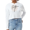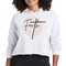 The Women's Cropped Hoodie Faith features a pre-shrunk fabric that maintains its shape and size after washing. The relaxed fit allows for easy movement, making it perfect for both lounging at home and running errands. The raw edge cut hem adds a trendy touch, setting it apart from standard hoodies.