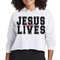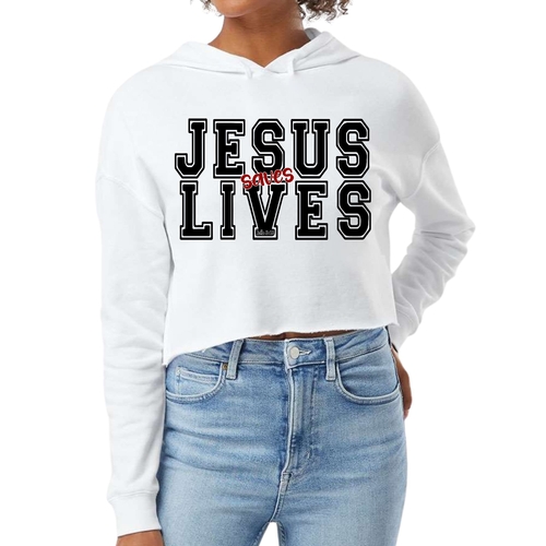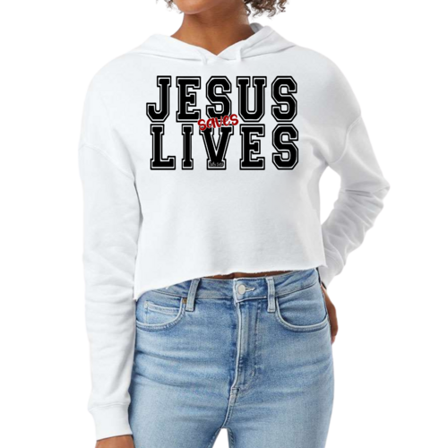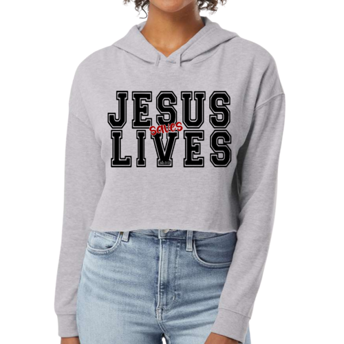 Introducing our Women's Cropped Hoodie featuring a striking 'Jesus Saves Lives' illustration in black and red. This hoodie is not just a fashion statement; it embodies a powerful message of faith and hope. Made from a high-quality cotton/polyester blend, this hoodie is designed for comfort and durability, ensuring that you can wear it for years to come.