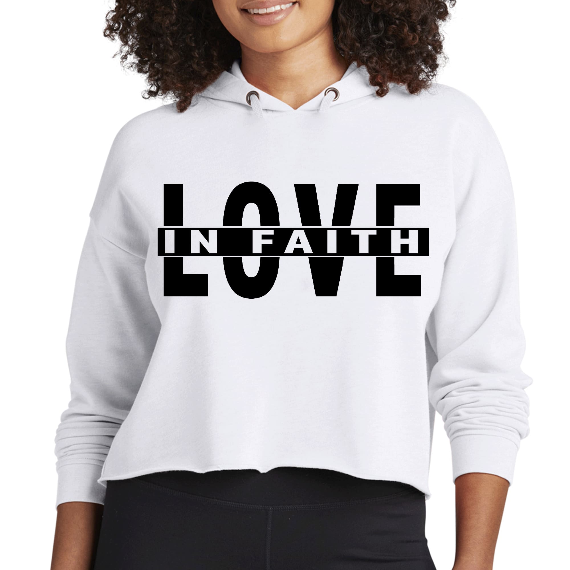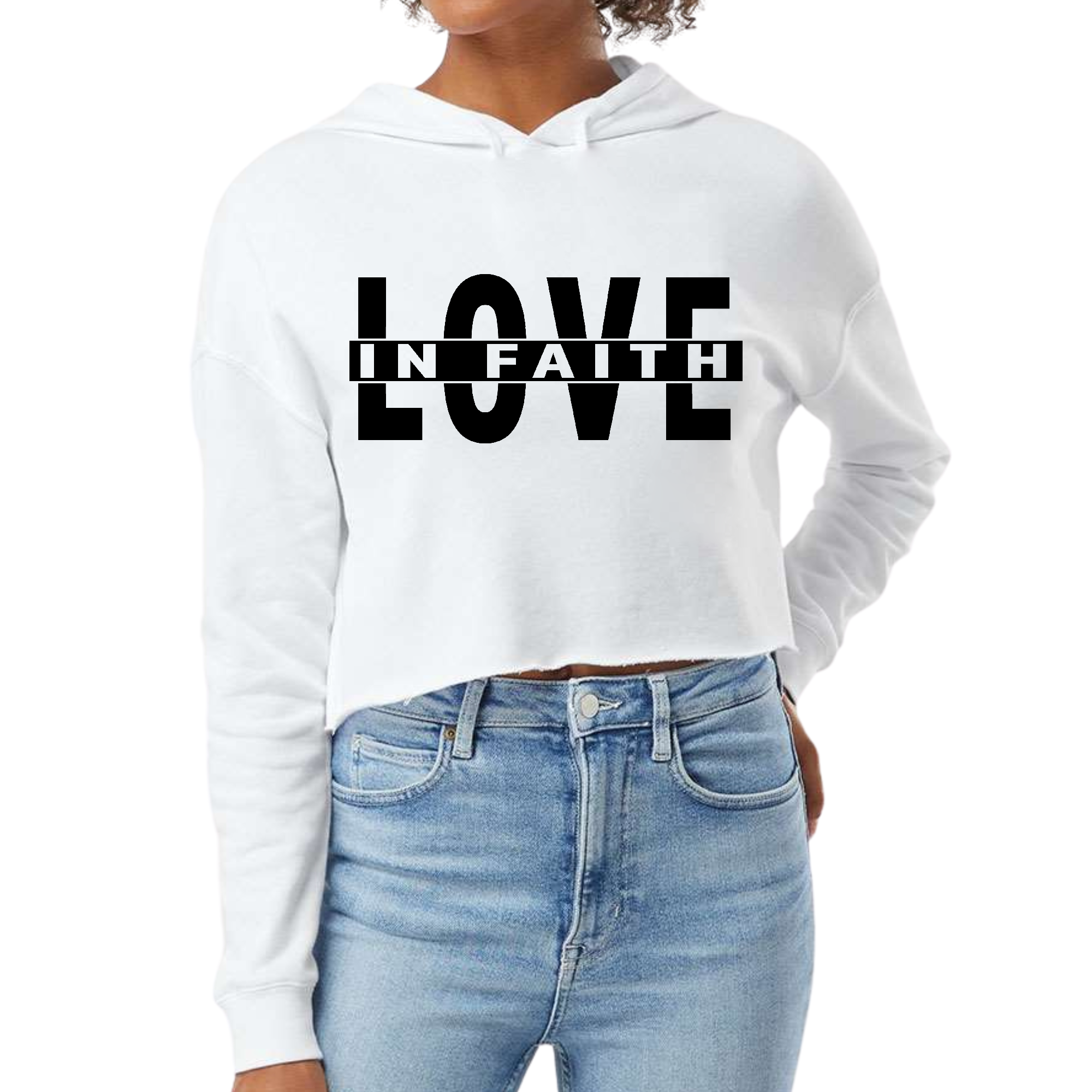 Available in multiple colors and sizes, the Womens Cropped Hoodie Love in Faith is perfect for any occasion. Pair it with your favorite jeans, leggings, or shorts for a casual yet chic outfit. Its versatility allows you to dress it up or down, making it a must-have piece in your wardrobe.