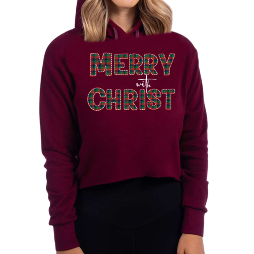 Embrace the holiday spirit with the Women's Cropped Hoodie Merry with Christ. Its combination of comfort, style, and festive design makes it a must-have for your winter wardrobe. Don't miss out on this stylish piece that will keep you cozy and chic throughout the season!