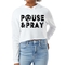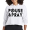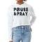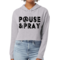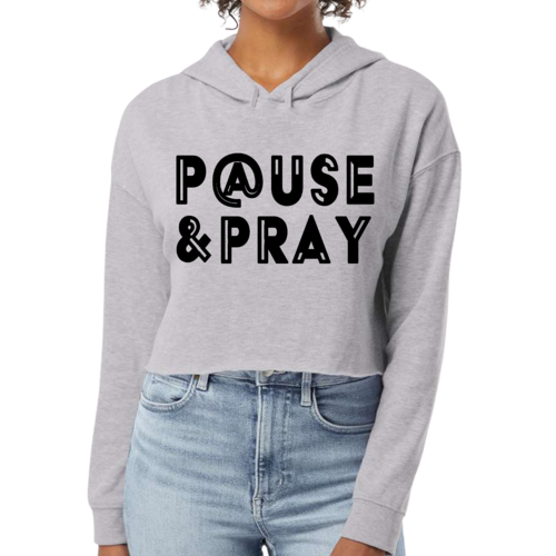 This hoodie features a raw edge cut hem that adds a modern twist to a classic silhouette. The cropped length is perfect for pairing with high-waisted jeans or leggings, making it a versatile addition to your wardrobe. The eye-catching Pause and Pray illustration adds a meaningful touch, allowing you to express your beliefs and style simultaneously.