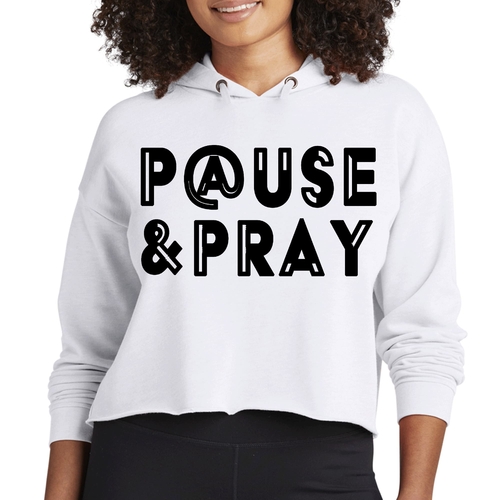 Introducing the Women's Cropped Hoodie featuring a unique Pause and Pray black illustration, designed for those who value both style and comfort. This trendy hoodie is perfect for casual outings, workouts, or simply lounging at home. Made from a high-quality cotton and polyester blend, it ensures durability while providing a soft touch against your skin.