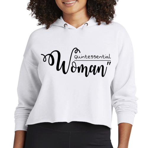 Introducing the Womens Cropped Hoodie featuring the Quintessential Woman black illustration, a perfect blend of style and comfort. This hoodie is designed for women who appreciate both fashion and functionality. Made from a high-quality cotton and polyester blend, this cropped hoodie is not only soft to the touch but also durable enough to withstand everyday wear. The inspirational affirmation design adds a unique touch, making it a standout piece in any wardrobe.