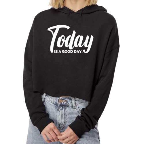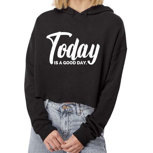 Introducing the Women's Cropped Hoodie, a stylish and comfortable addition to your wardrobe that embodies the phrase 'Today is a Good Day.' This hoodie is designed for women who appreciate both fashion and functionality, making it perfect for casual outings, lounging at home, or running errands. Crafted from a high-quality cotton/polyester blend, this hoodie ensures durability and comfort, allowing you to wear it day after day without compromising on style.