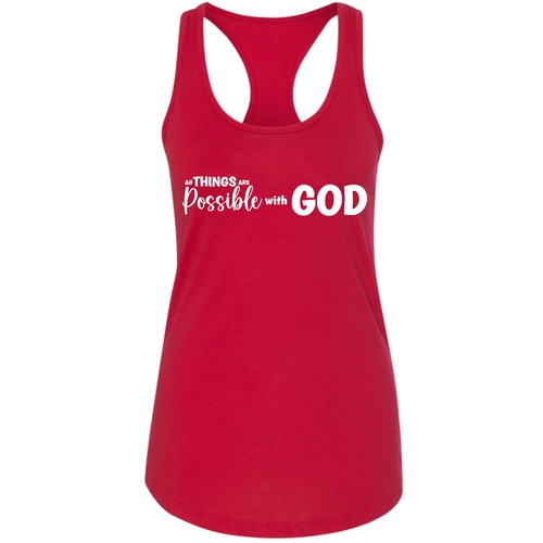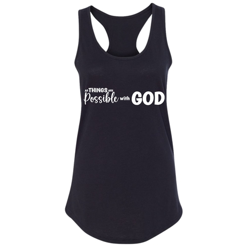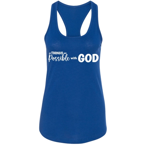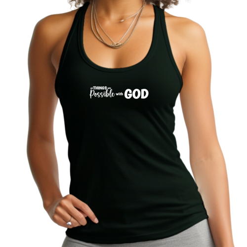 Introducing our Women's Fitness Tank Top, a perfect blend of comfort and motivation. Featuring the inspiring phrase 'All Things Are Possible With GOD', this tank top is designed for women who want to stay active while embracing positivity. Made from soft, preshrunk cotton, this shirt ensures that you not only look good but feel great during your workouts or casual outings.