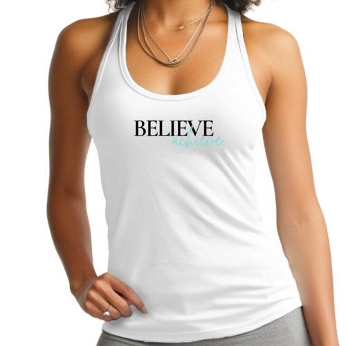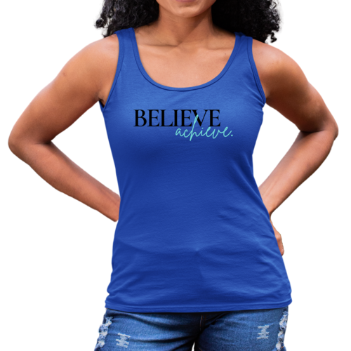 This tank top is not just for workouts; it's perfect for casual wear too. Pair it with your favorite leggings, shorts, or jeans for a stylish and comfortable look. The inspirational 'Believe and Achieve' graphic serves as a daily reminder to stay motivated and push through challenges, making it an ideal choice for fitness enthusiasts and anyone looking to embrace a positive mindset.