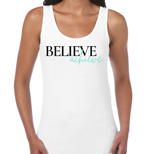 Don't miss out on the chance to elevate your activewear collection with our Women's Fitness Tank Top Graphic T-shirt. Order yours today and embrace the 'Believe and Achieve' mindset!