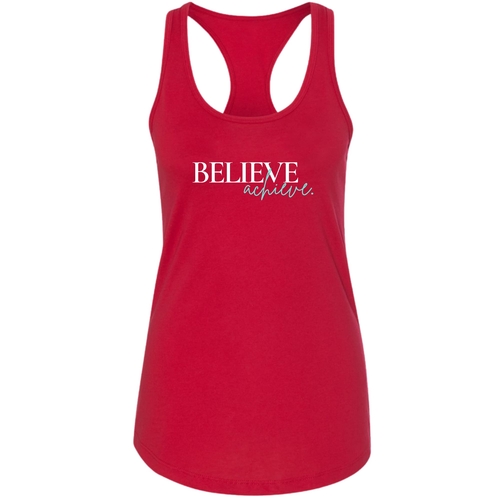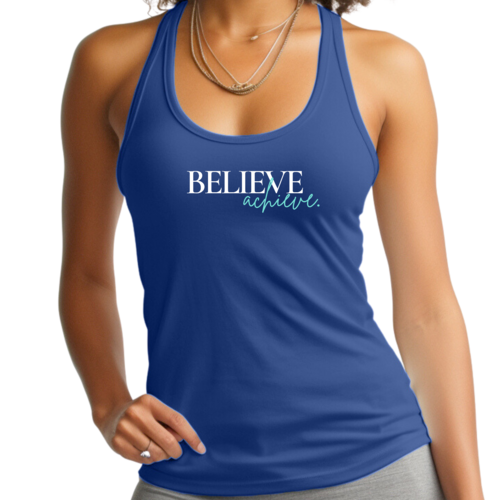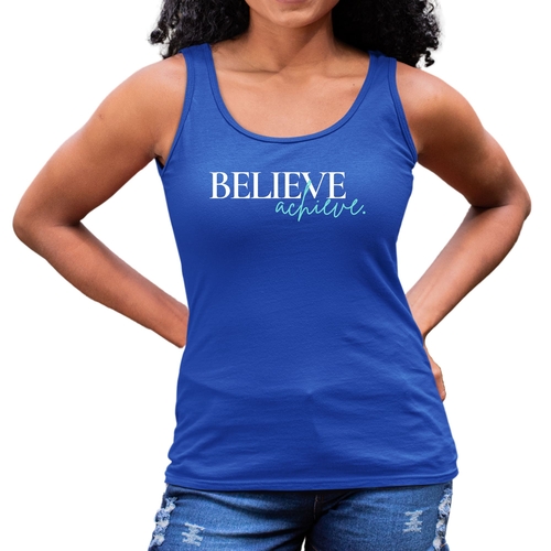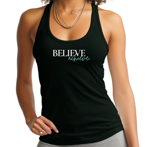 Women's Fitness Tank Top featuring 'Believe and Achieve' graphic, made from soft preshrunk cotton, ideal for workouts and casual wear.
