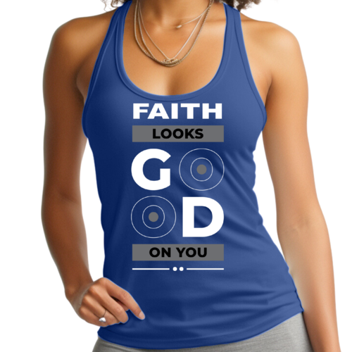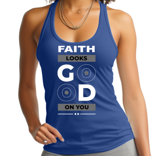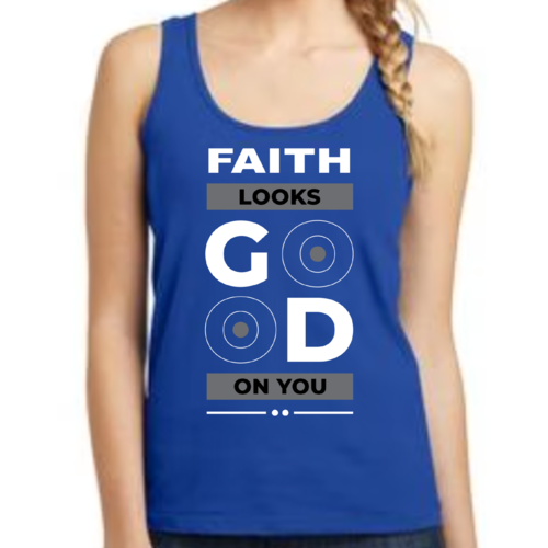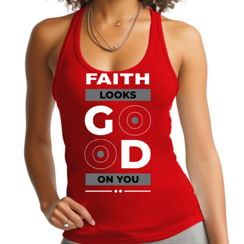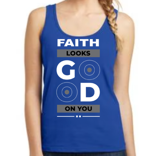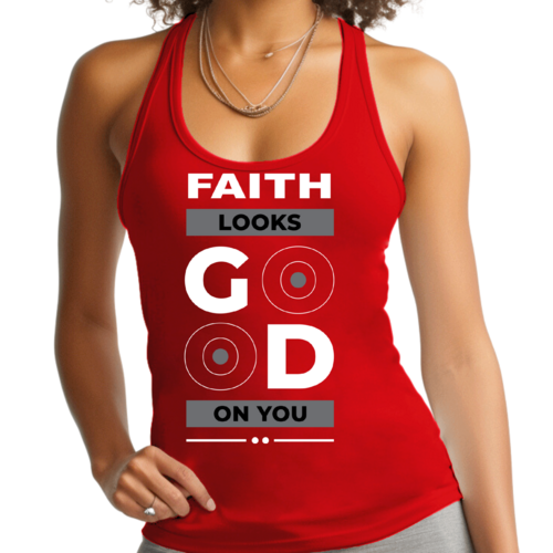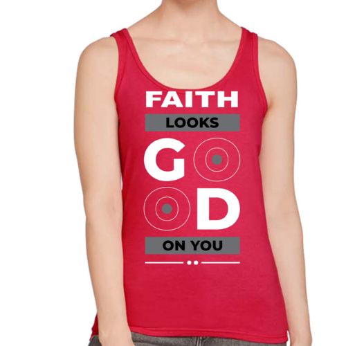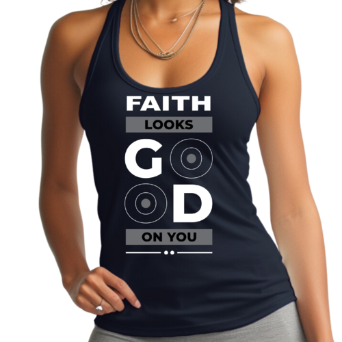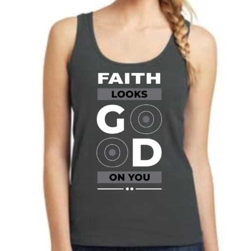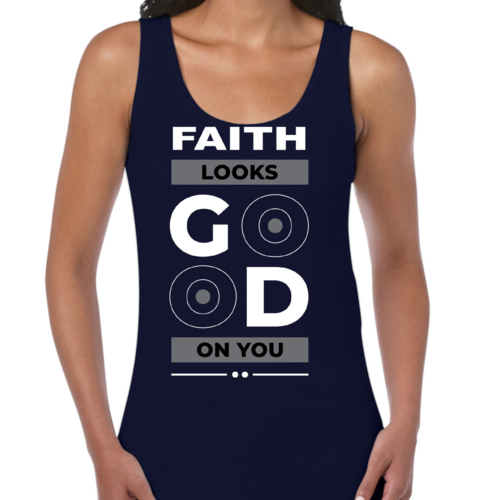 Introducing our Women's Fitness Tank Top Graphic T-shirt, a perfect blend of style and comfort. This tank top features the inspiring phrase 'Faith Looks Good', making it not just a piece of clothing but a statement of positivity and motivation. Whether you're hitting the gym, going for a run, or simply lounging at home, this tank top is designed to keep you comfortable and stylish.