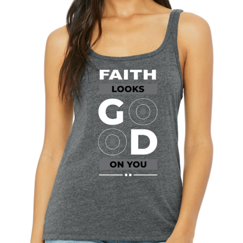 The graphic on this tank top is not just visually appealing; it serves as a source of motivation. The phrase 'Faith Looks Good' is a reminder to stay positive and embrace your journey, whether in fitness or life. This stylish design makes it easy to pair with your favorite leggings, shorts, or jeans, allowing you to transition from workout to casual outings effortlessly.