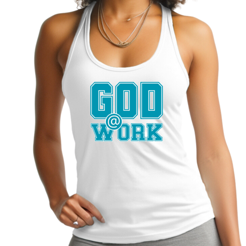 Choosing the God @ Work Blue Green Women's Fitness Tank Top means choosing comfort, style, and motivation. It's perfect for women who want to express their faith and dedication to fitness while looking fabulous. Whether you're at the gym, running errands, or enjoying a day out with friends, this tank top will keep you feeling great and looking stylish.