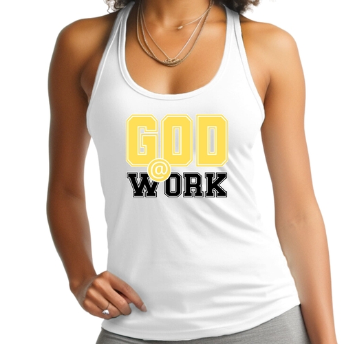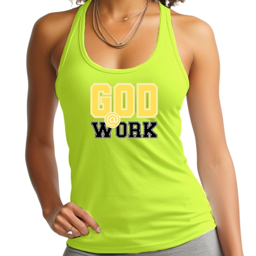 This tank top is not just a piece of clothing; it's a statement. The bold yellow and black print with the phrase 'God @ Work' serves as a reminder of your faith and dedication to fitness. It's perfect for wearing during workouts, yoga sessions, or even casual outings with friends. Pair it with your favorite leggings or shorts for a complete look that showcases your commitment to both style and spirituality.