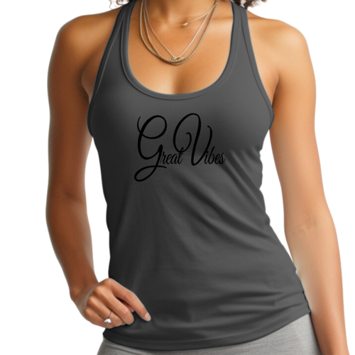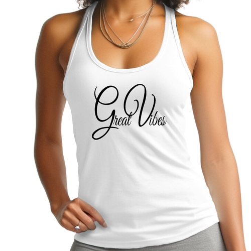 This tank top features a unique Great Vibes graphic illustration that adds a touch of personality to your workout attire. Whether you're hitting the gym, going for a run, or simply lounging at home, this tank top will keep you looking stylish and feeling great. The black color is not only trendy but also easy to pair with any workout bottoms or casual wear.