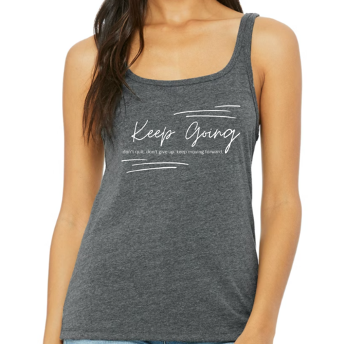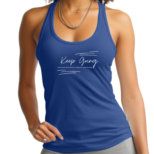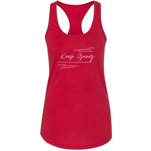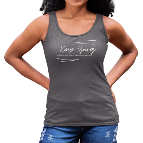 Introducing our Women's Fitness Tank Top Graphic T-shirt, designed to inspire and motivate you during your workouts and daily activities. Featuring the uplifting phrase 'Keep Going Don't Give Up', this tank top serves as a reminder to push through challenges and stay committed to your fitness journey. Made from soft, preshrunk cotton, this shirt not only feels great against your skin but also retains its shape and softness even after multiple washes.